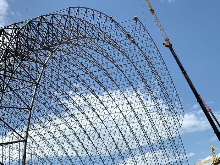 (2)网架加工前应对现场尺寸进行复测,确认无误后方可进行加工、安装;网架制作、运输、安装应遵守《空间网格结构技术规程》JGJ7-2010、《钢网架普兰店螺栓球节点》JG/T 10-2009、《钢网架普兰店螺栓球节点用高强度螺栓》 GB/T 16939-2016、《普兰店钢结构普兰店工程普兰店施工规范》 GB50755-2012、《普兰店钢结构普兰店工程施工质量验收标准》 GB50205-2020。